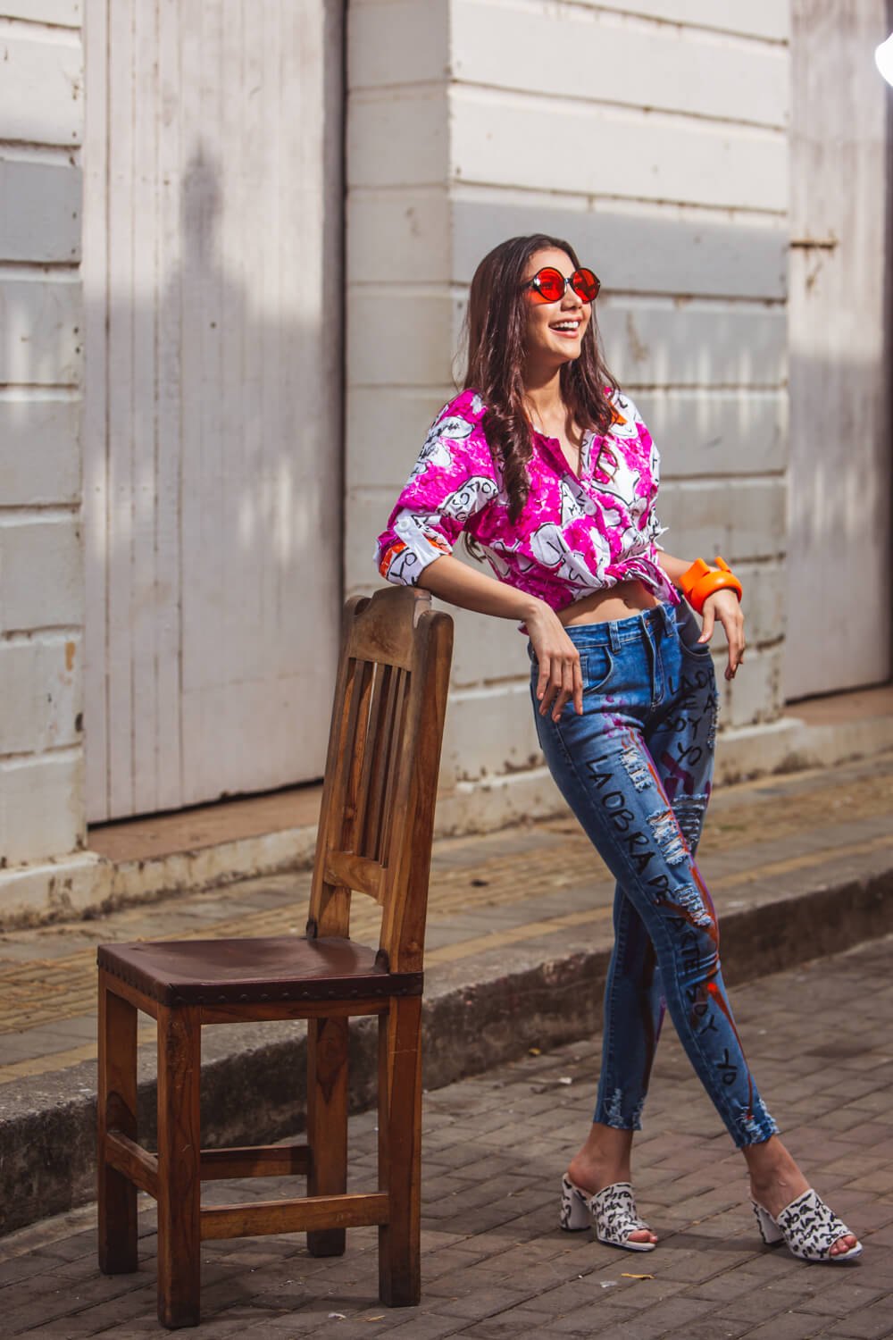 Elaborada en algodón stretch, corte oversize silueta amplia y bolsillos laterales ,La técnica es pintura sobre textiles,los print son pintados sobre la tela y luego tienen su proceso de fijación y sellado.