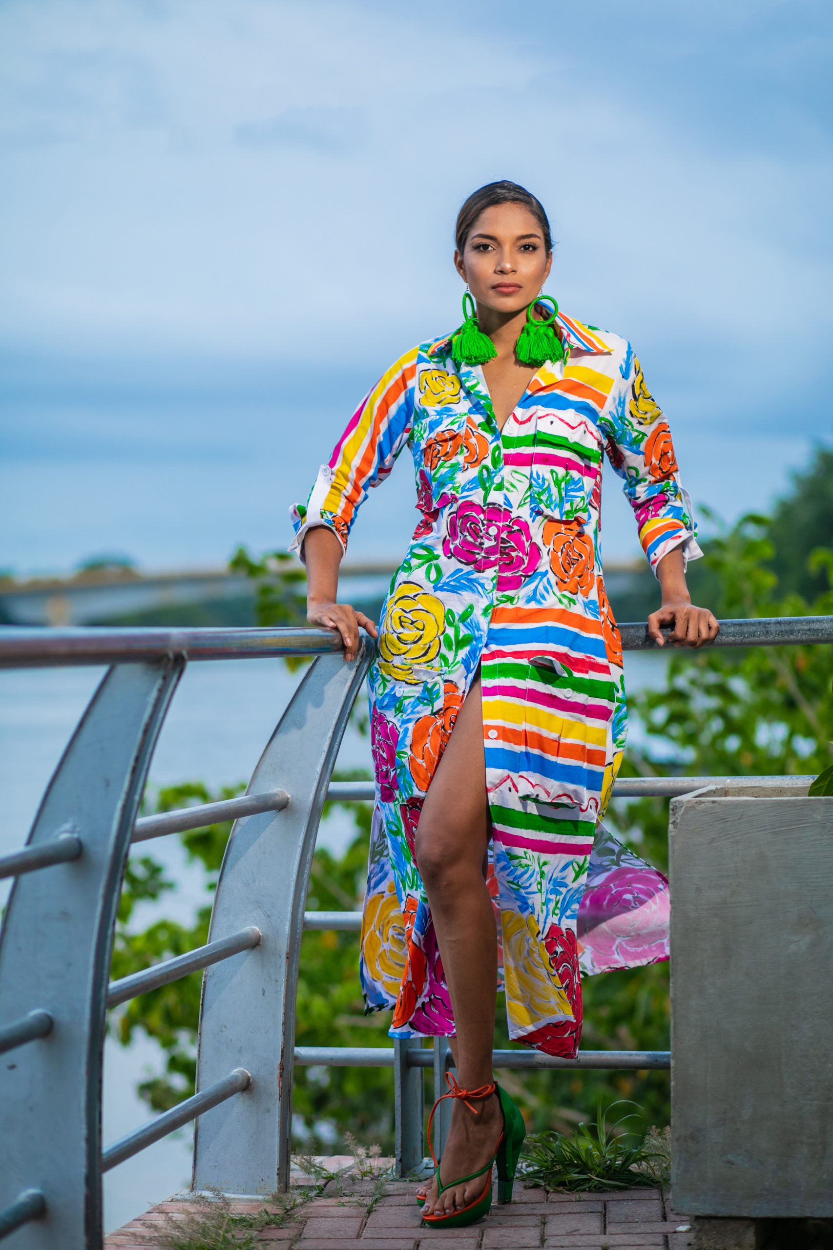 Elaborada en algodón stretch, corte al recto con botonadura frontal, puños y cuello. La técnica es pintura sobre textiles, los print son pintados sobre la tela y luego tienen su proceso de sellado.