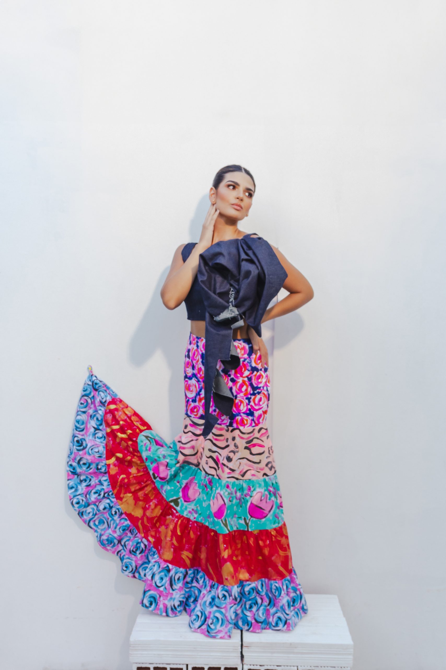 Es una obra que celebra la armonía entre lo natural y lo urbano. Esta pieza combina la robustez del jean con la delicadeza de estampados florales y la audacia del animal print, creando un contraste vibrante y único. Las flores parecen surgir desde la textura del denim, simbolizando la capacidad de florecer en cualquier entorno, incluso en los más inesperados. Esta obra es un homenaje a la resiliencia y la belleza que emerge cuando se mezclan elementos contrastantes, reflejando un espíritu fuerte y lleno de vida.