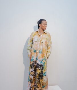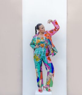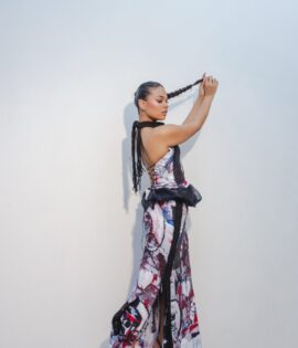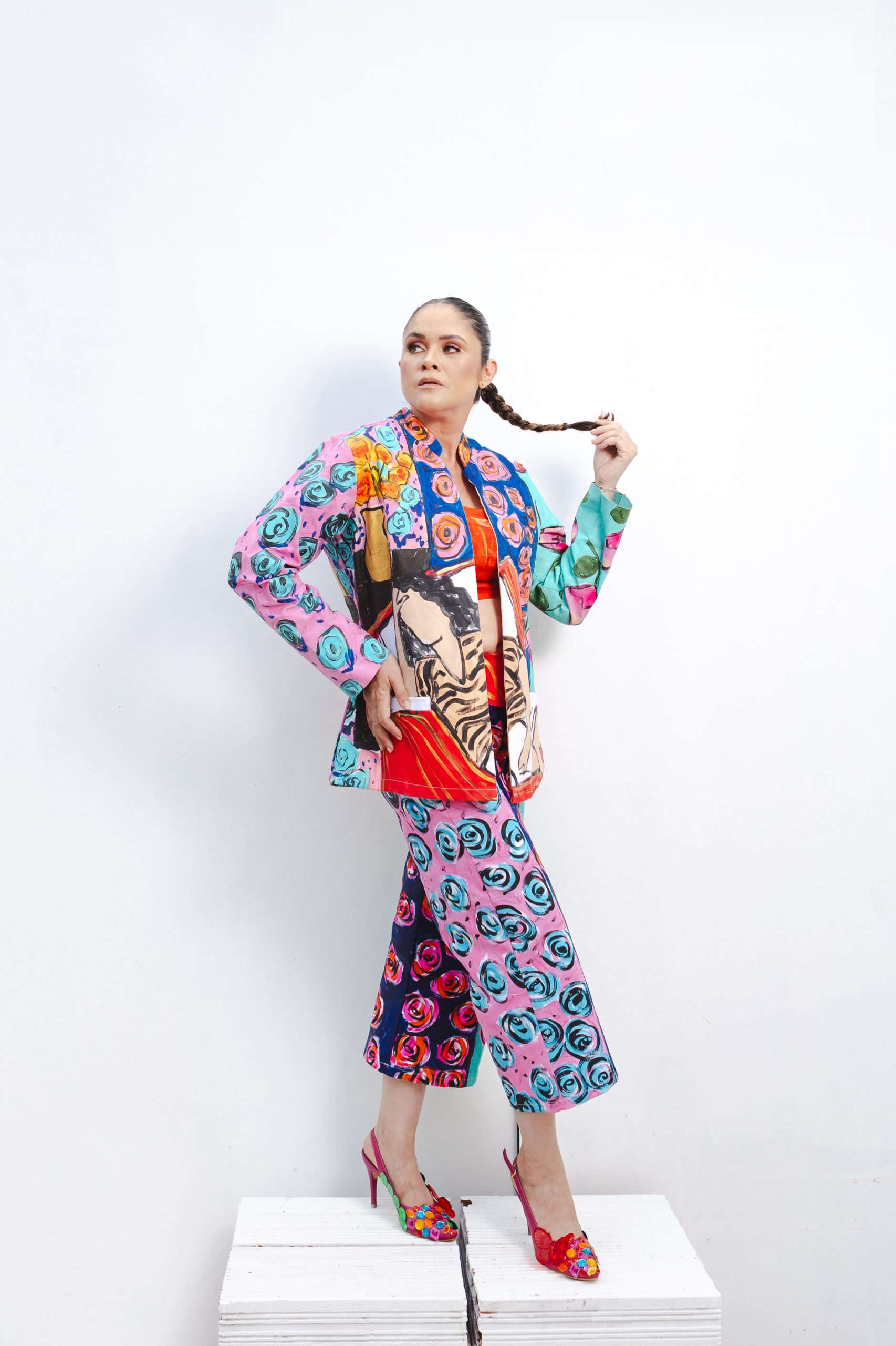 Es una obra que encapsula la elegancia y profundidad de una mujer sumida en sus pensamientos. Sentada en un majestuoso mueble rojo vibrante con detalles dorados, su presencia domina una habitación llena de vida, con paredes tapizadas de colores intensos y flores que contrastan con su serena introspección. Esta pieza captura un momento de contemplación, donde la riqueza del entorno refleja la riqueza interior de la mujer, destacando su fuerza, sabiduría y la belleza de su mente en reposo.