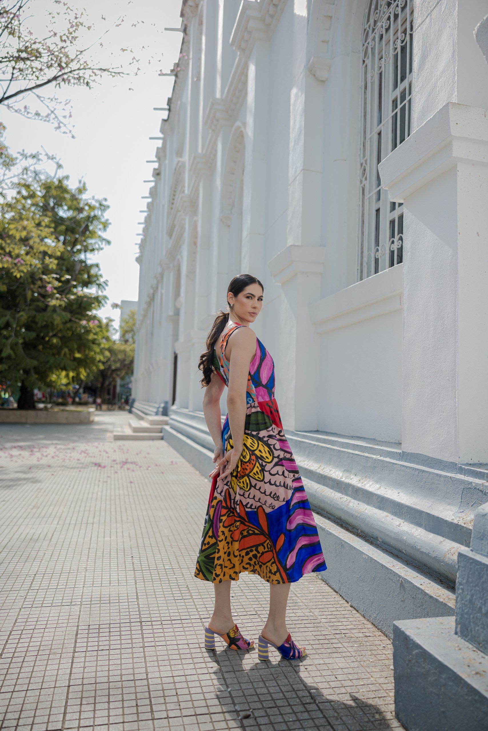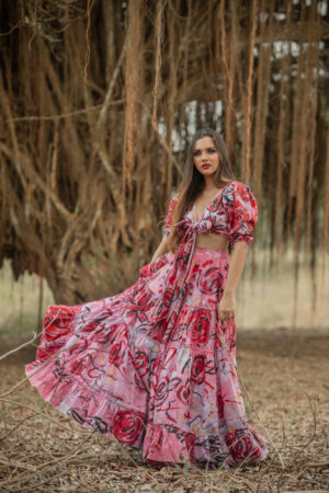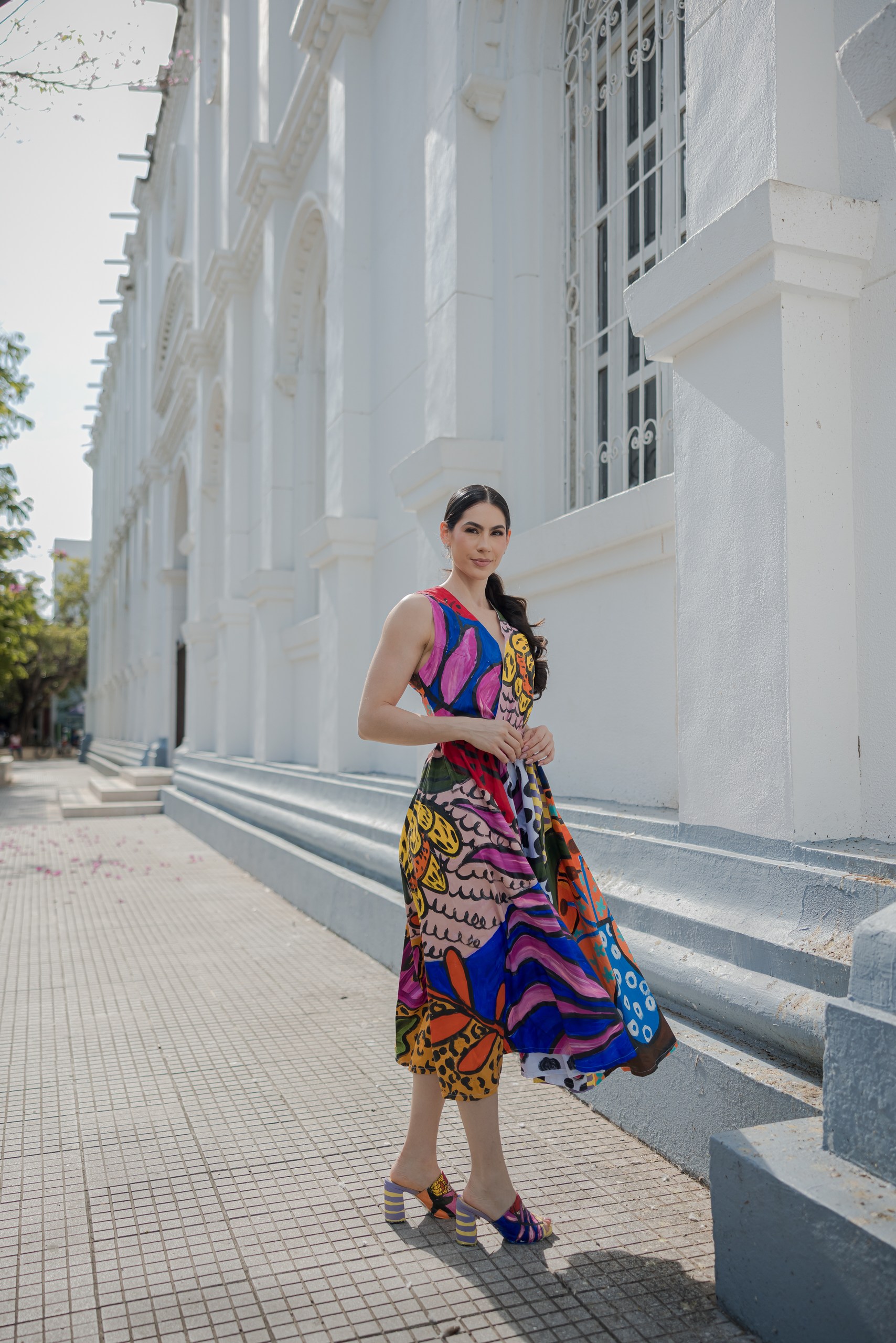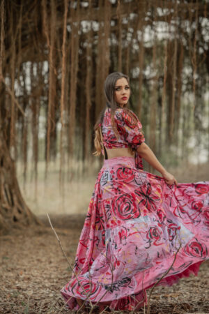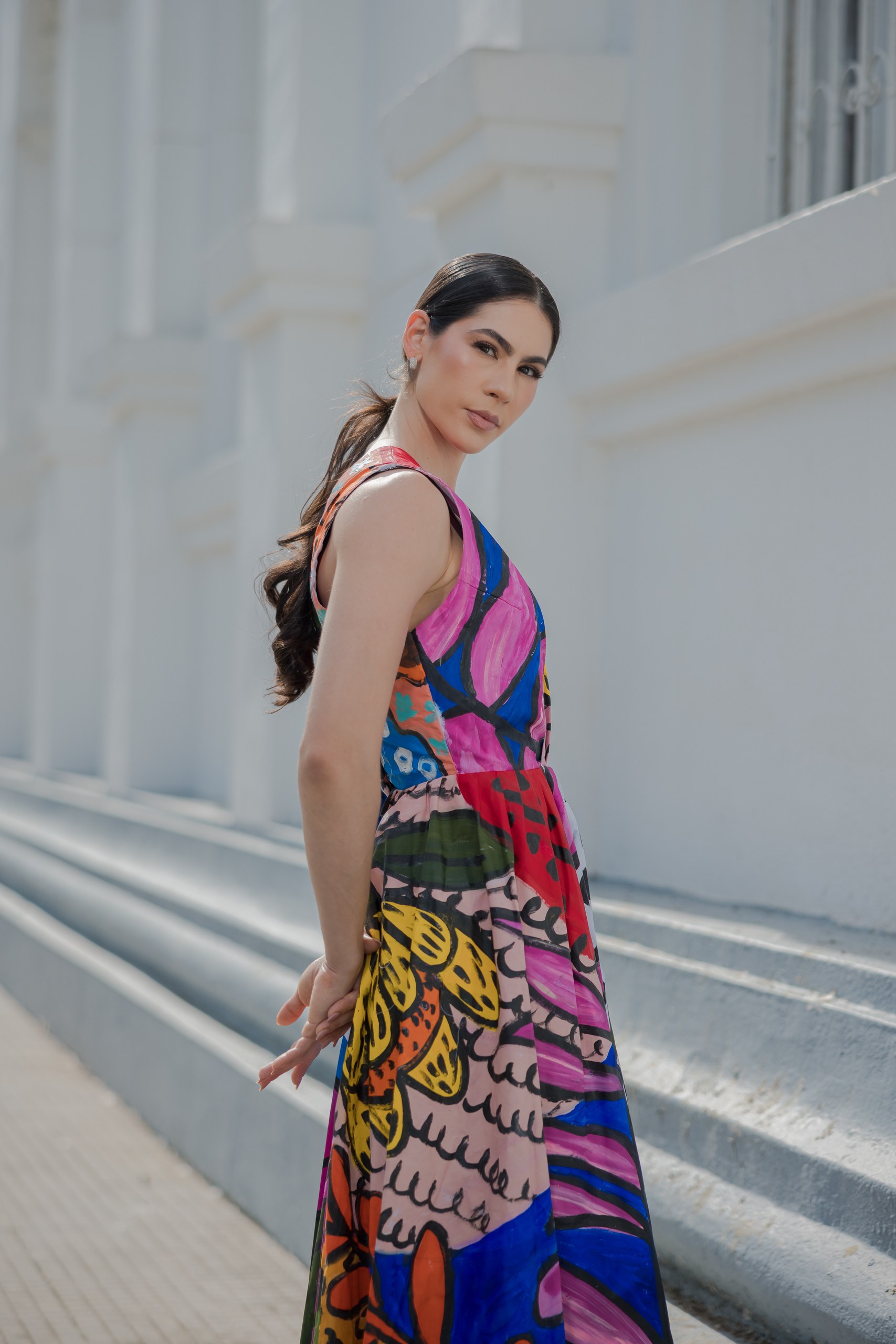 VESTIDO CON ESCOTE EN V, CON TRAZOS EXPRESIVOS PINTADO A MANO. CADA PIEZA ES UNA OBRA UNICA DONDE EL COLOR CUENTA UNA HISTORIA INTIMA DE RENACIMIENTO Y EMOCION.