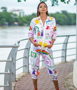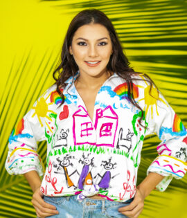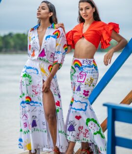 Una explosión de color que celebra la alegría, la libertad y la belleza de lo auténtico. Inspirada en la niñez, la naturaleza y los arcoíris que aparecen después de la tormenta, cada prenda pintada a mano es una invitación a reconectar con lo esencial: la luz, el juego y la emoción de vivir con intensidad.
