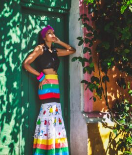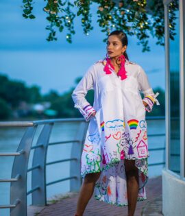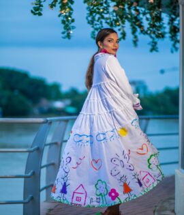 Diseñada para mujeres que aman lo diferente y se visten con alma, Rainbow fue diseñada y presentada para una pasarela con propósito, uniendo arte y solidaridad en un mensaje de esperanza compartida.